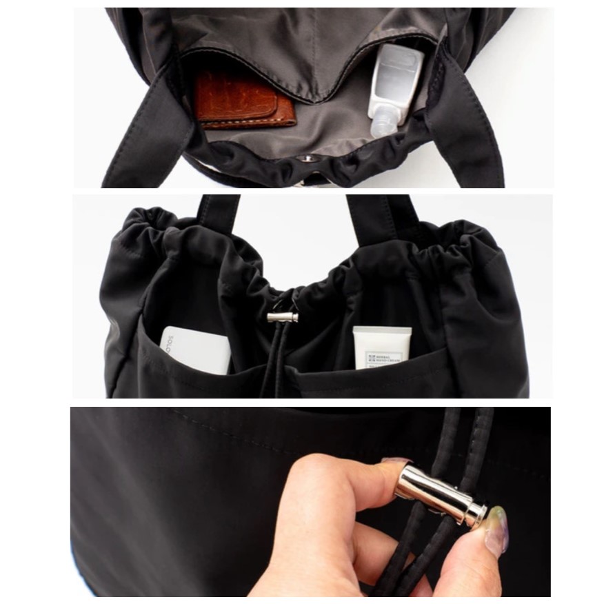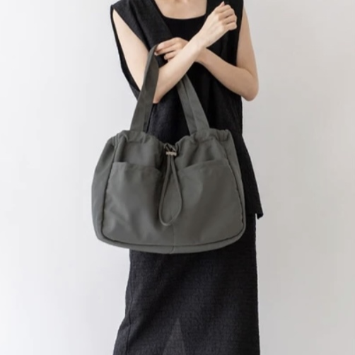 軽くて丈夫なナイロンを使用した、A4サイズが入る大きめ巾着トートバッグ