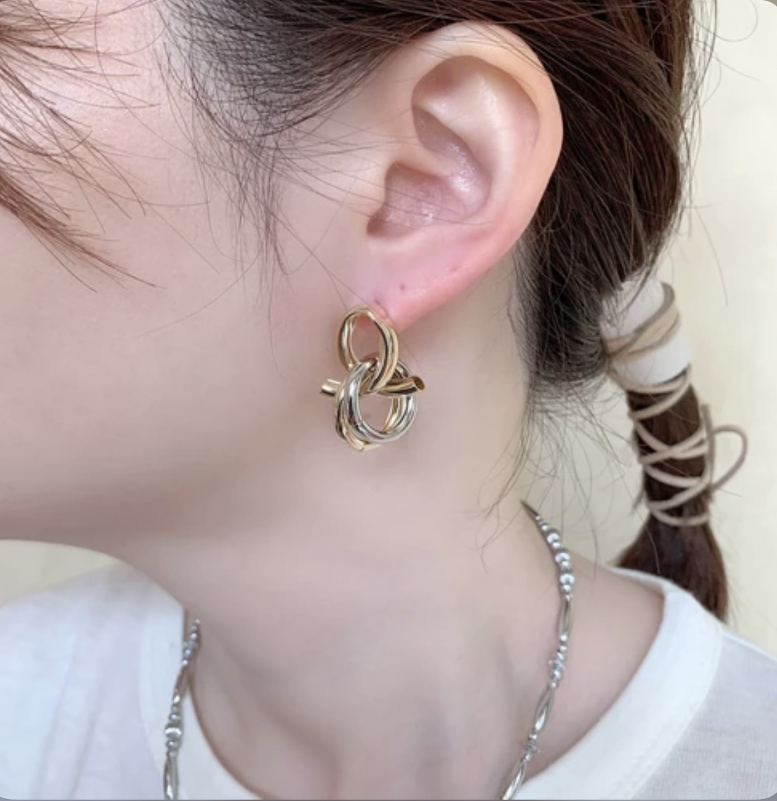 立体的にカーブしたフォルムが、耳元で映え、お顔周りを飾ります。