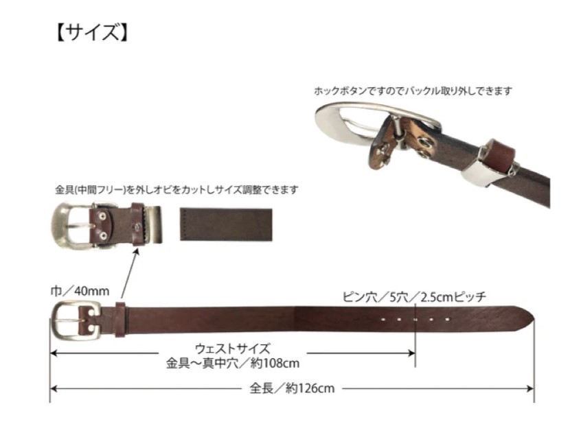 日本製 栃木レザー ベルト 40mm