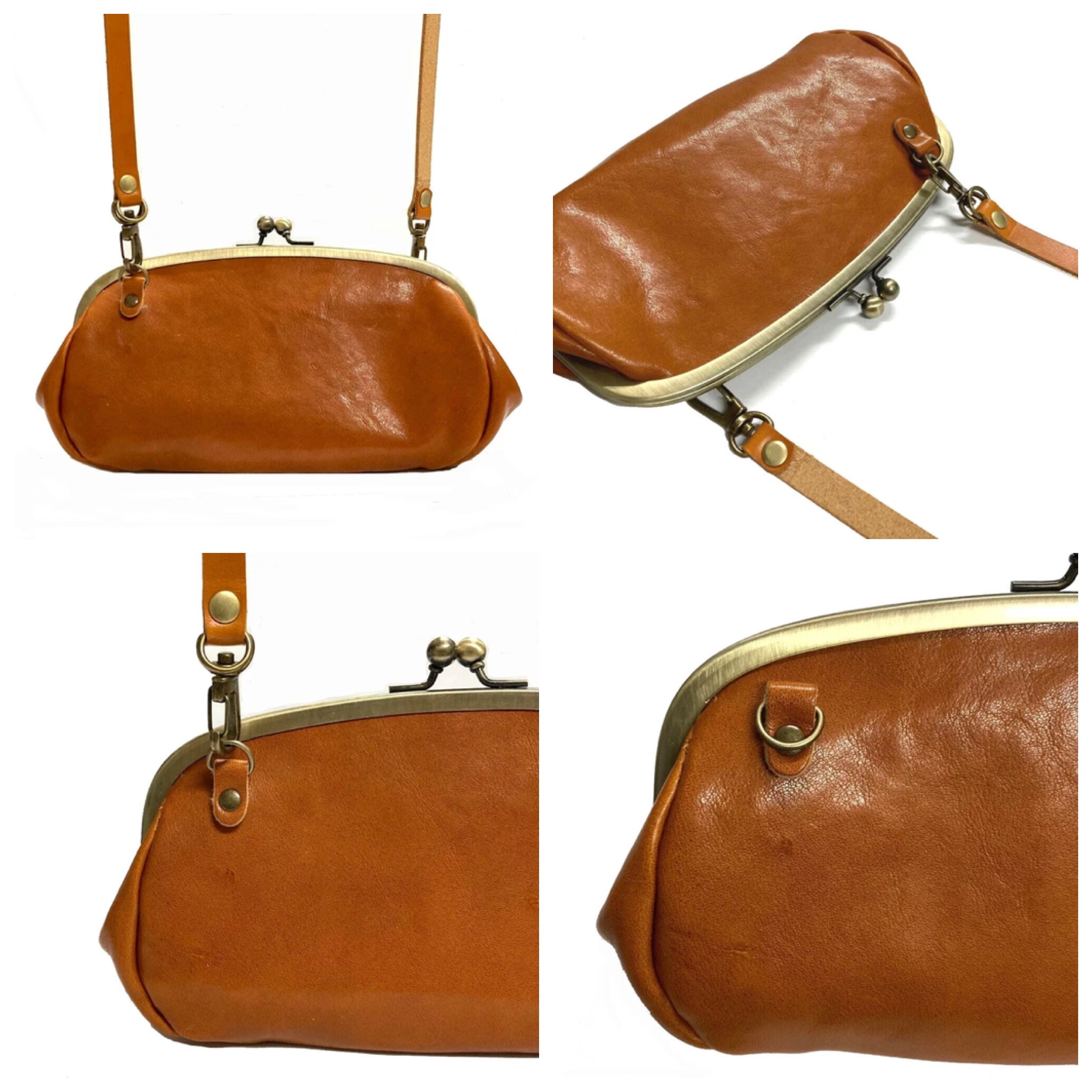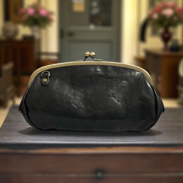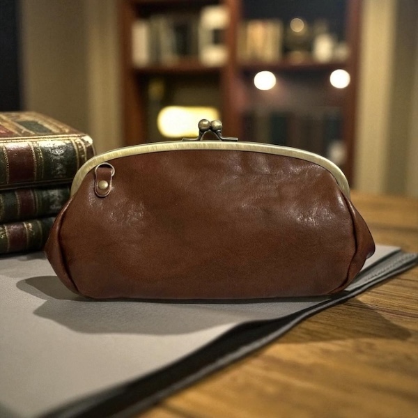 本革 親子がま口 財布 大容量 Dカン付き