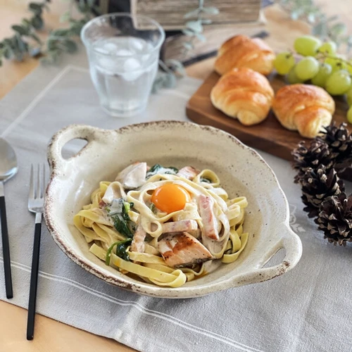 窯変マット手付きパスタ皿