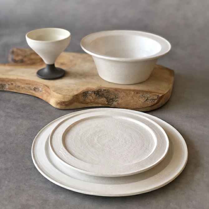 漆喰の表現を器に施した新感覚の白い器。