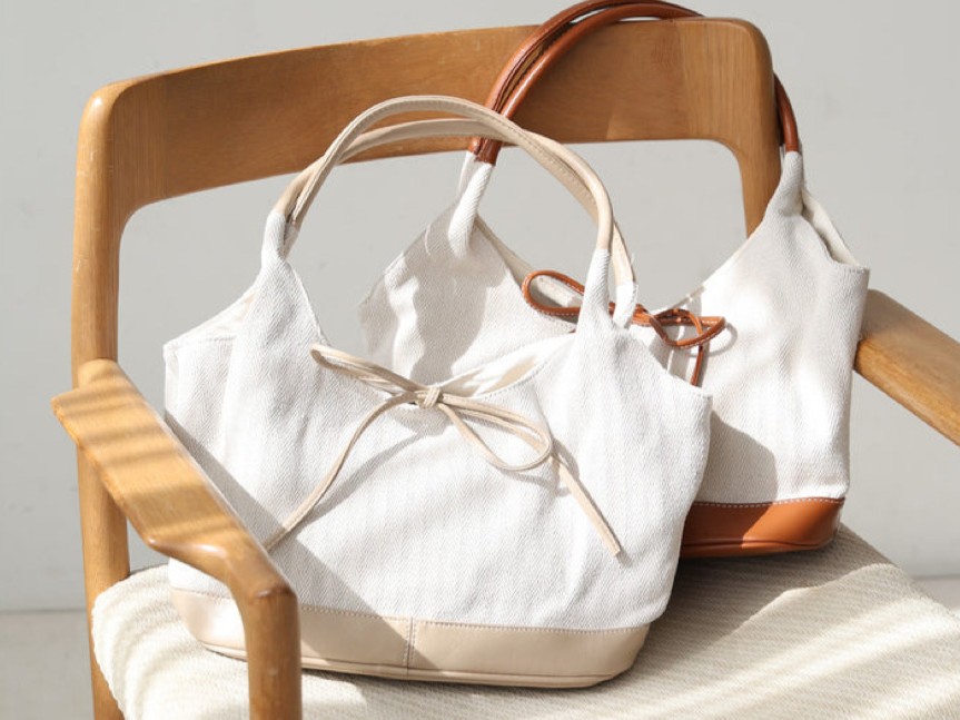 キャンバス地や合成皮革など異なる素材とMIXすることで、シンプルながらも洗練された印象になります。