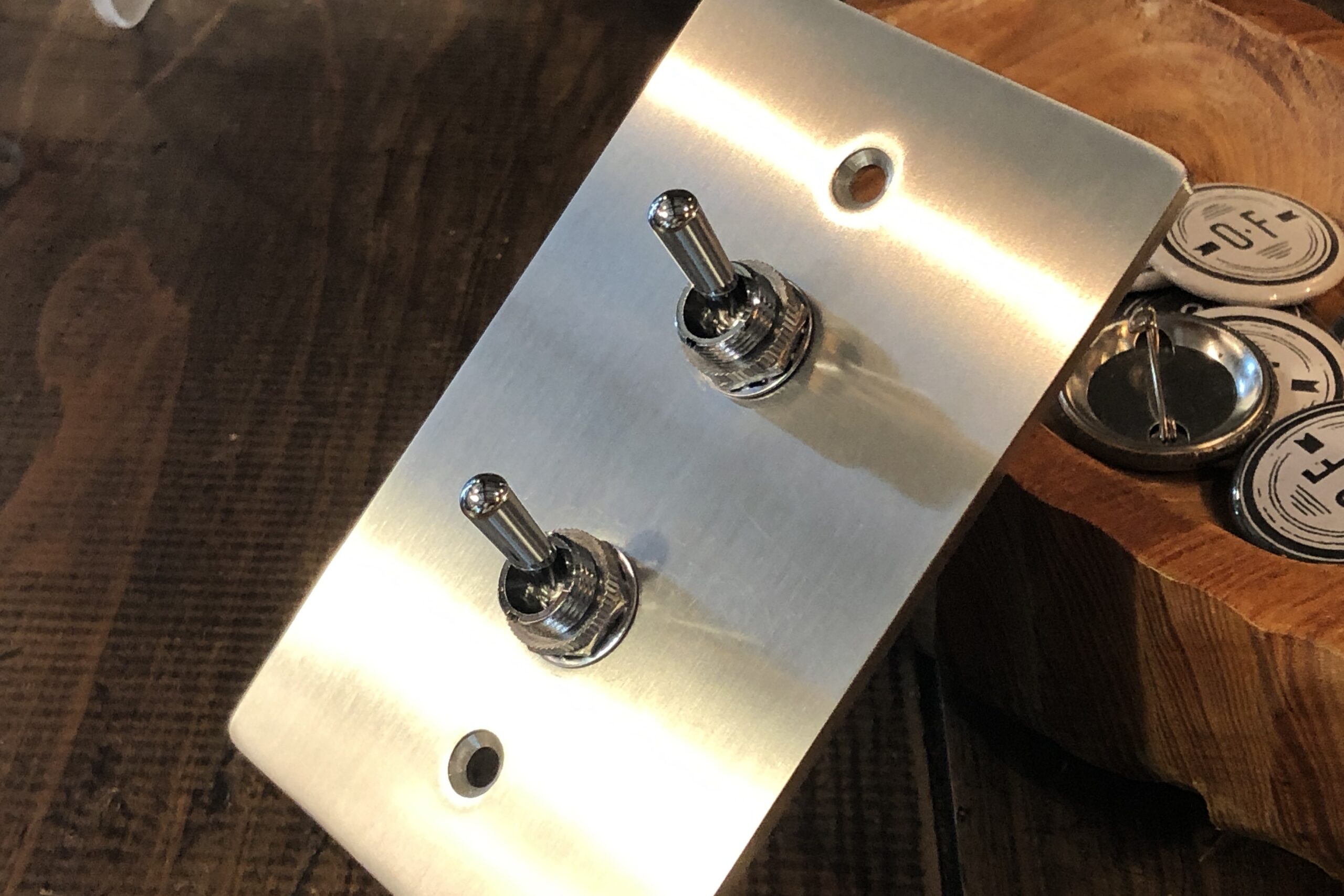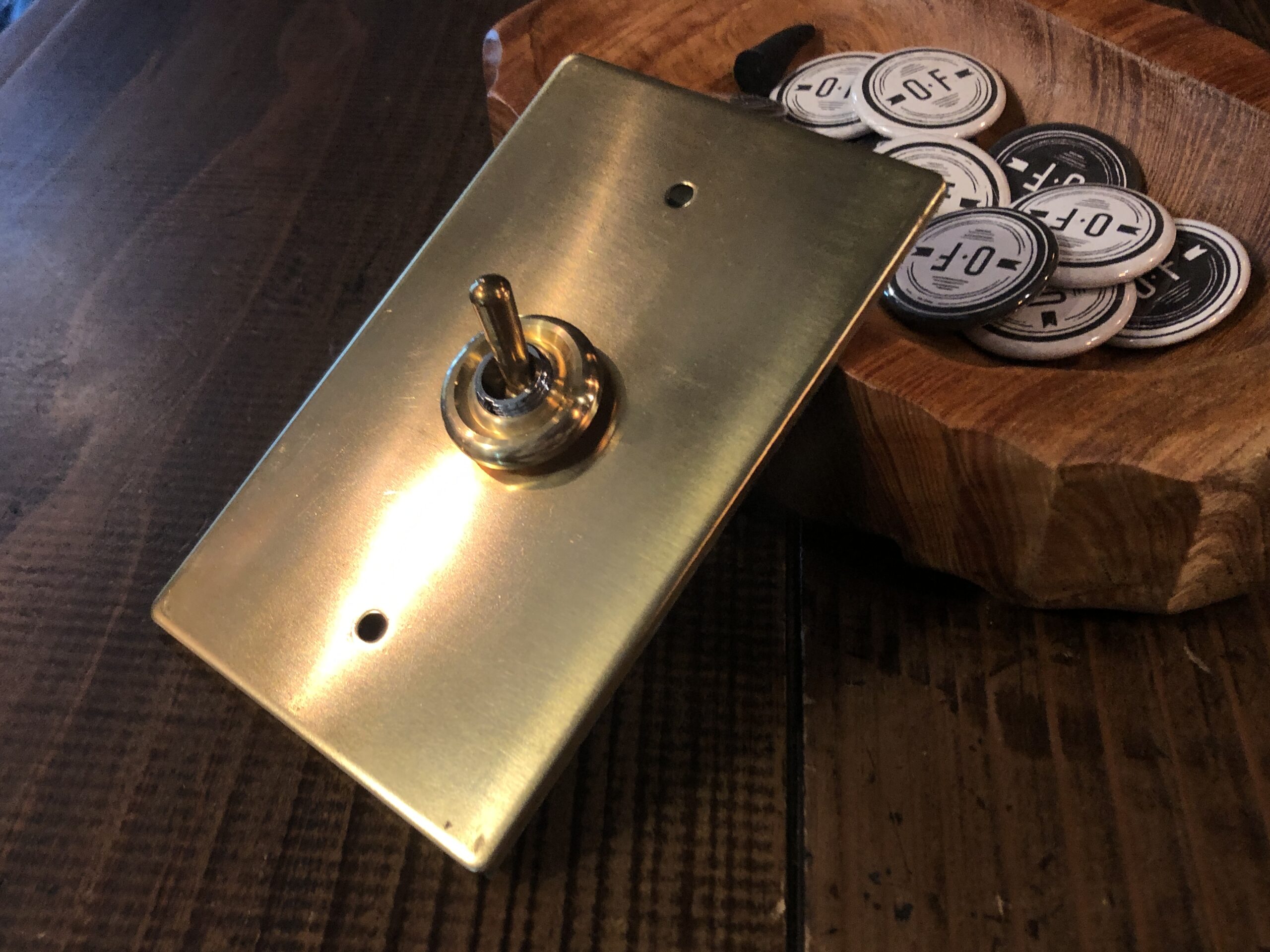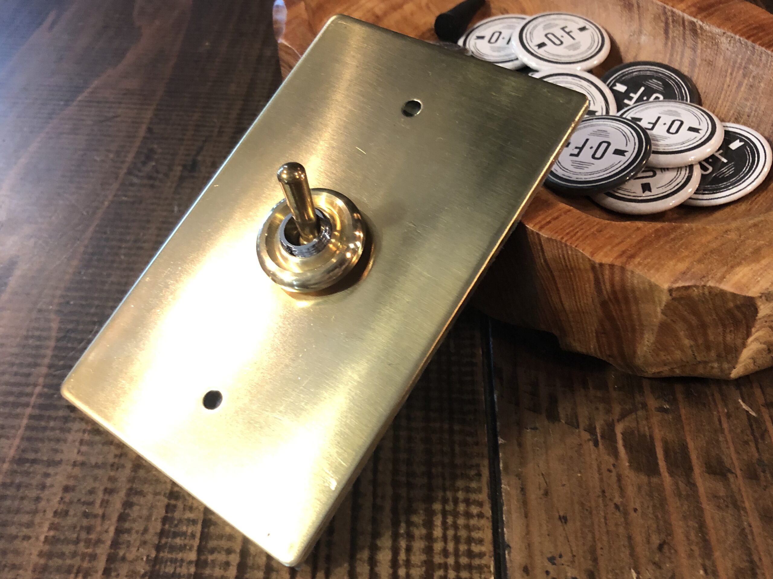 プレート、トグル、ネジ、全てが真鍮製の存在感抜群なトグルスイッチです。