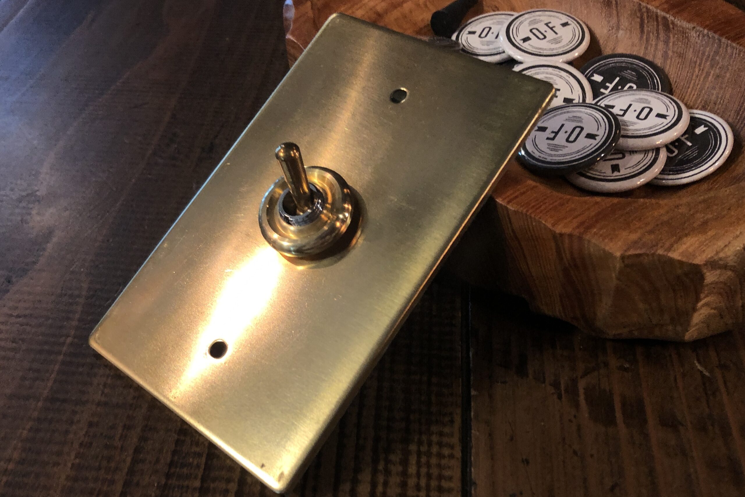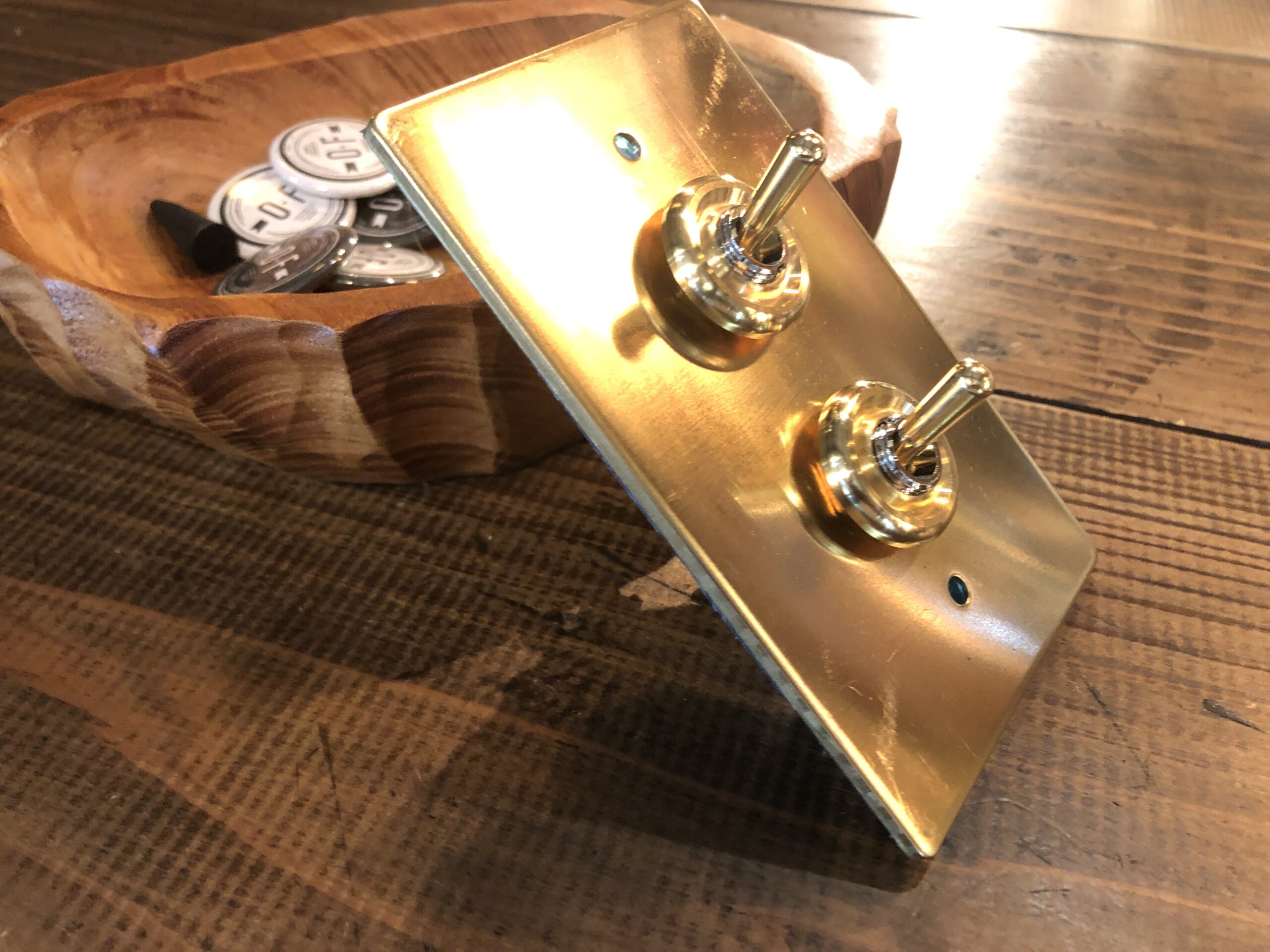 プレート、トグル、ネジ、全てが真鍮製の存在感抜群なトグルスイッチです。