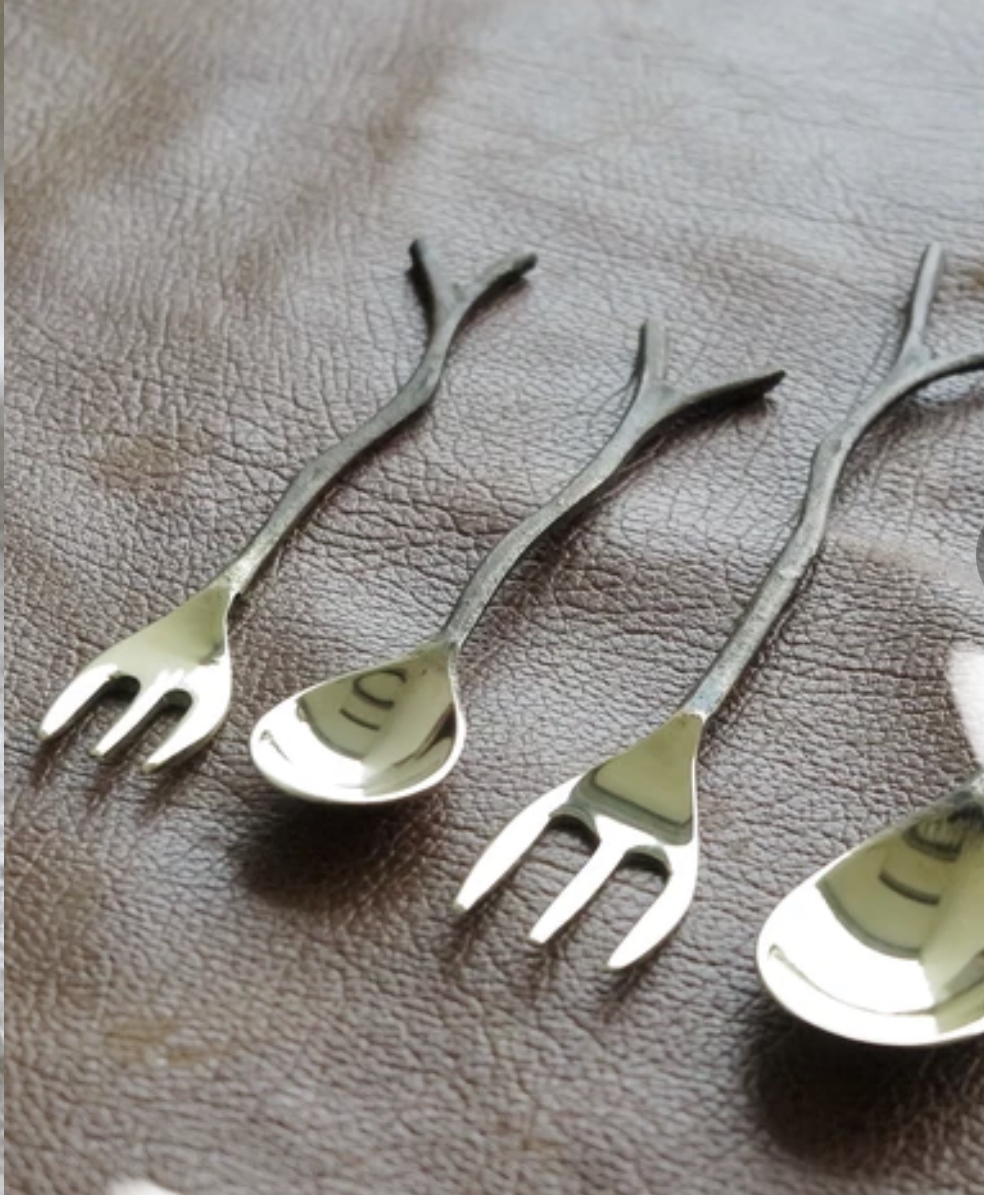 真鍮製の木の枝の型をしたスプーンとフォーク