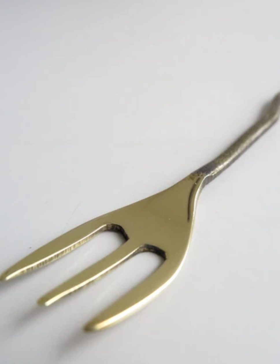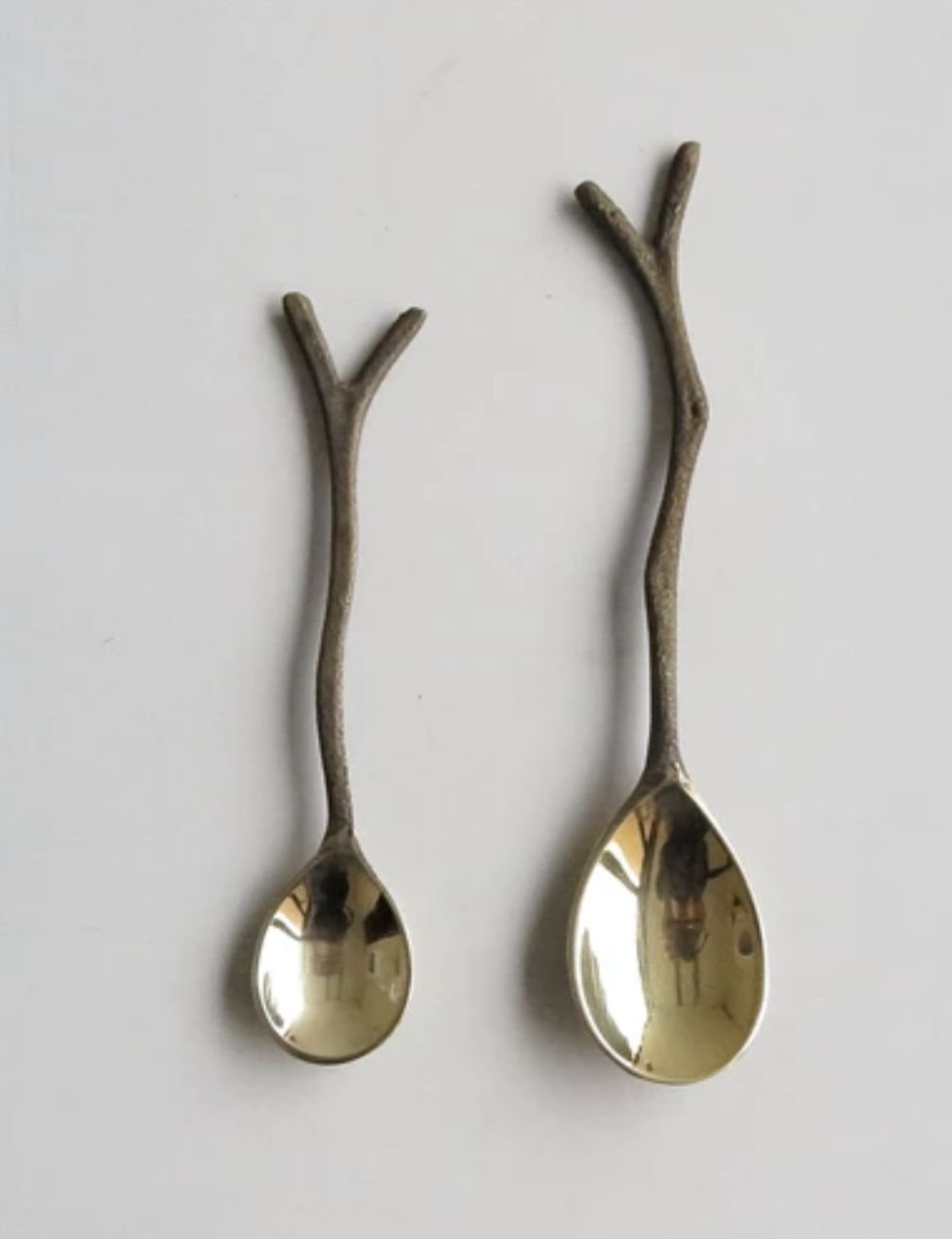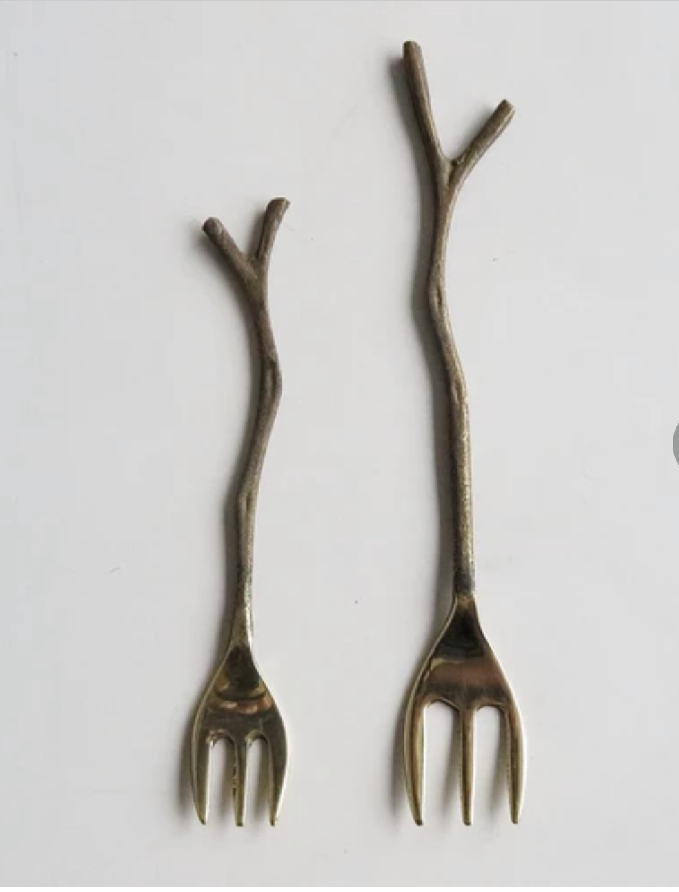 真鍮製の木の枝の型をしたスプーンとフォーク。