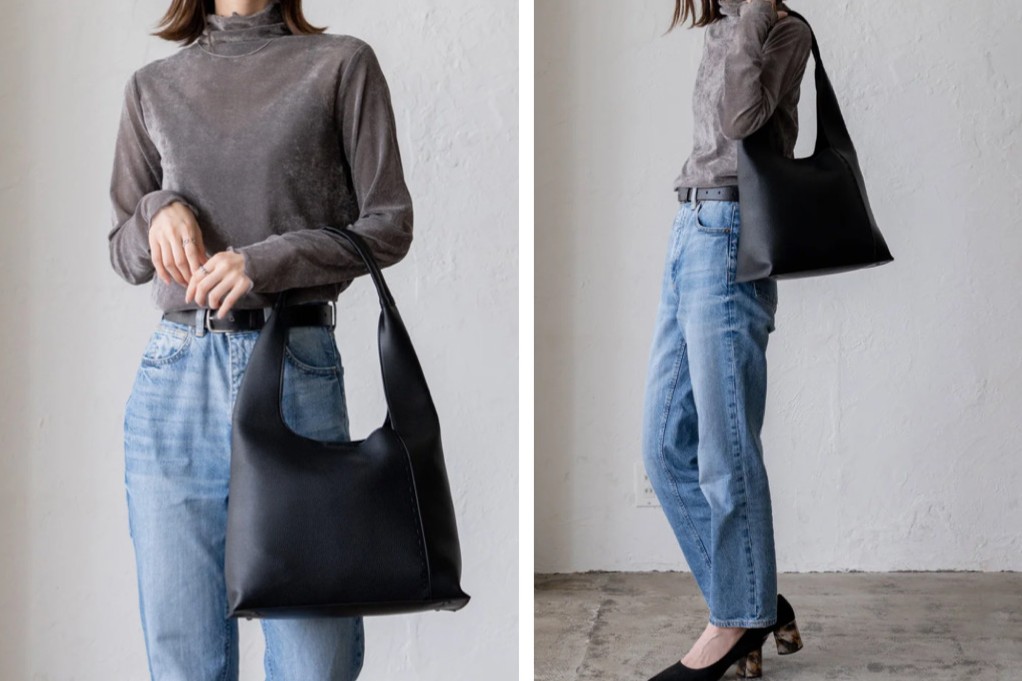 異なるフェイクレザーを組み合わせたワンハンドルトートバッグ