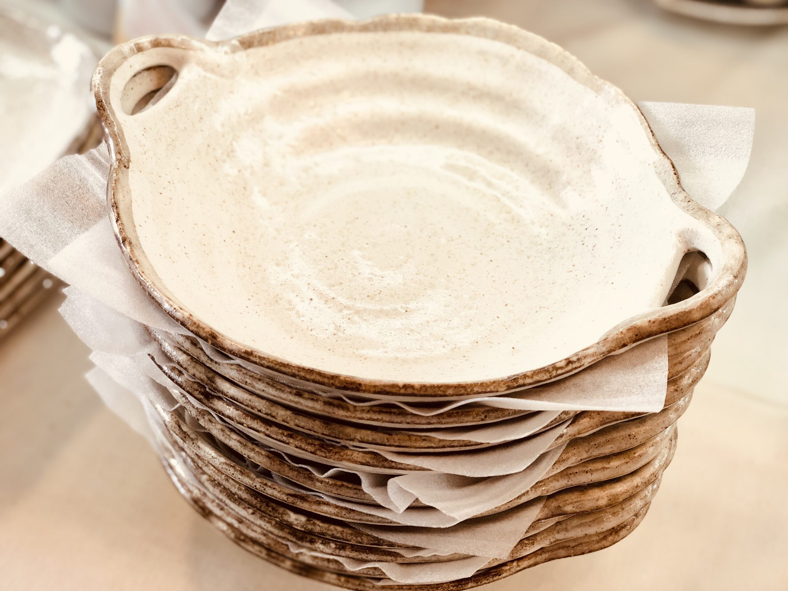 ・少し黄色がかった優しいカラーのスープ皿。