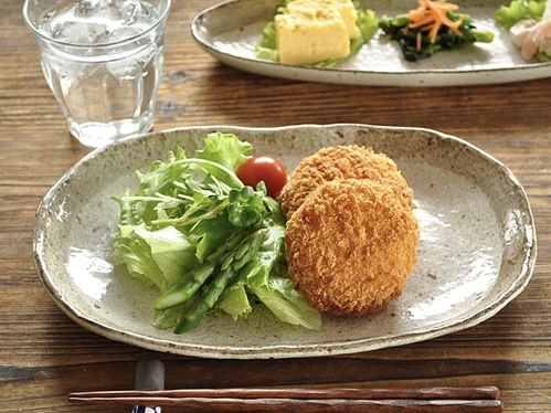 ・楕円のフォルムの多様皿は、添え物を一緒に盛り付けても十分余裕があります。