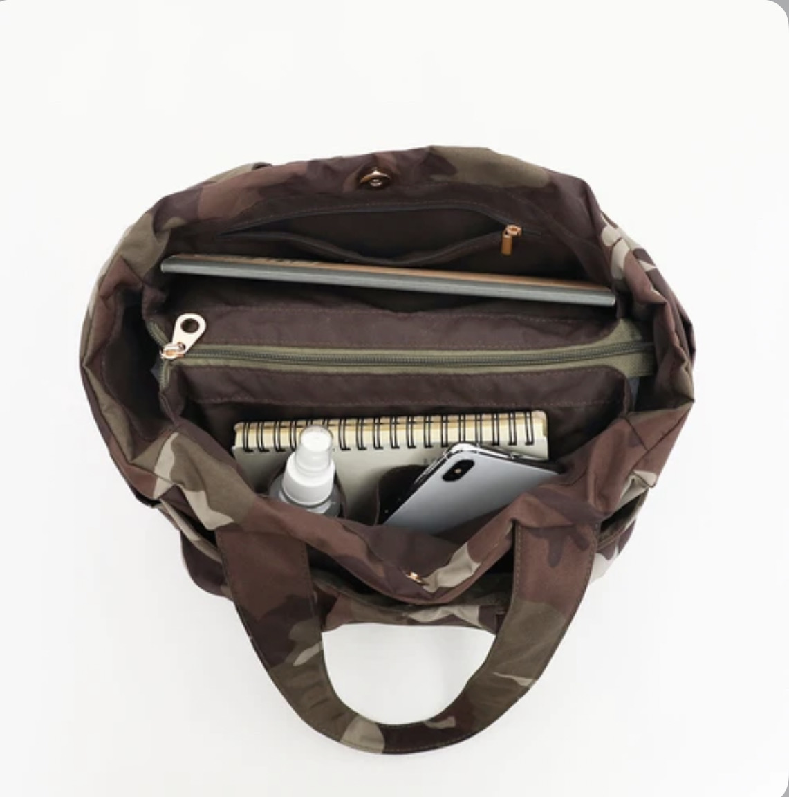 迷彩柄タック入多ポケトートバッグ