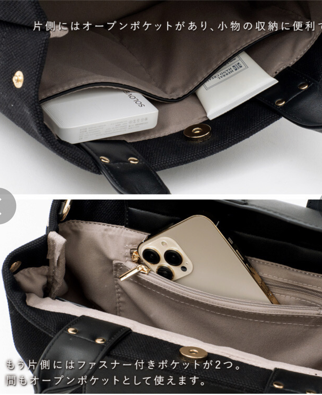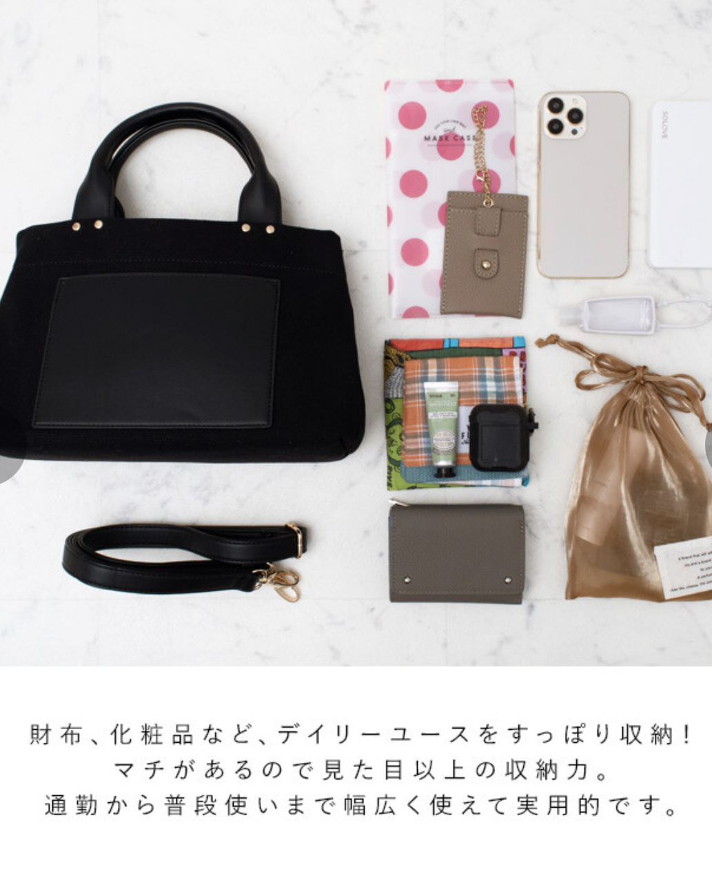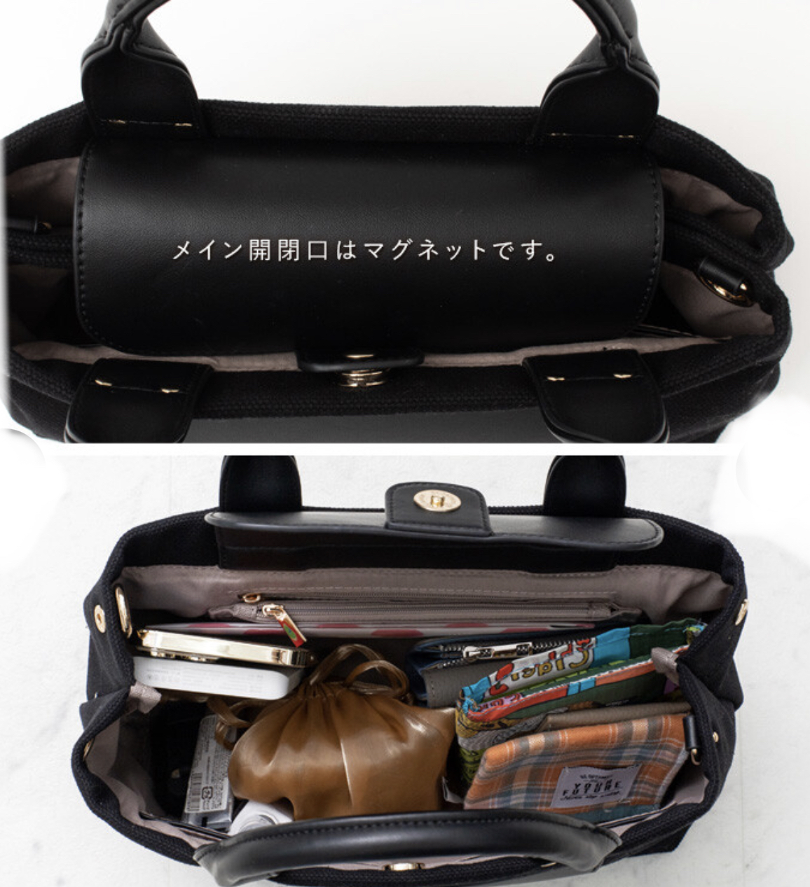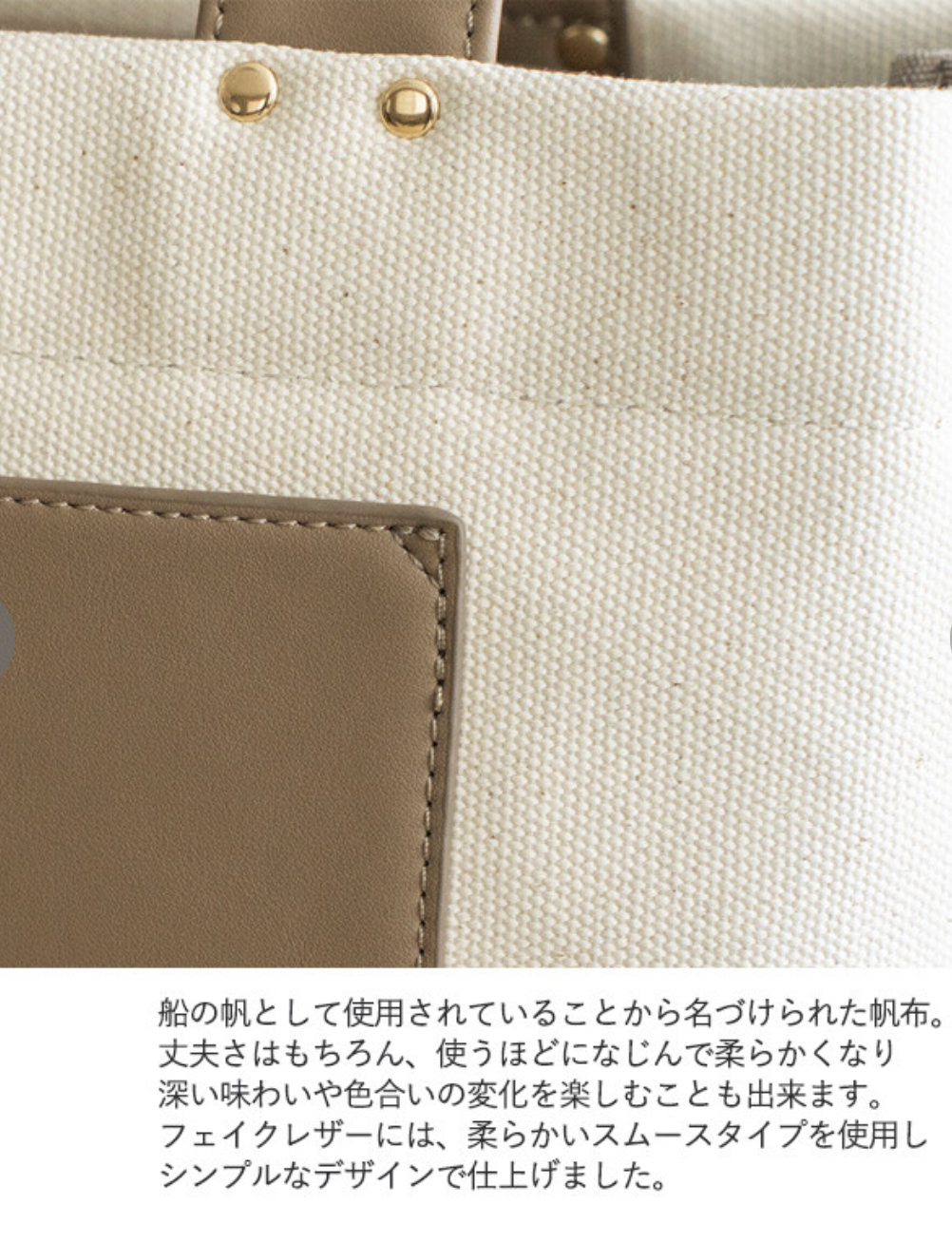 厚手のキャンバス地と丈夫なスムースフェイクレザーを合わせた