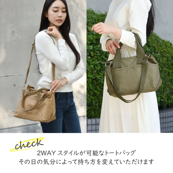 オールシーズン使える、ショルダーが付いた2WAYキャンバストート。