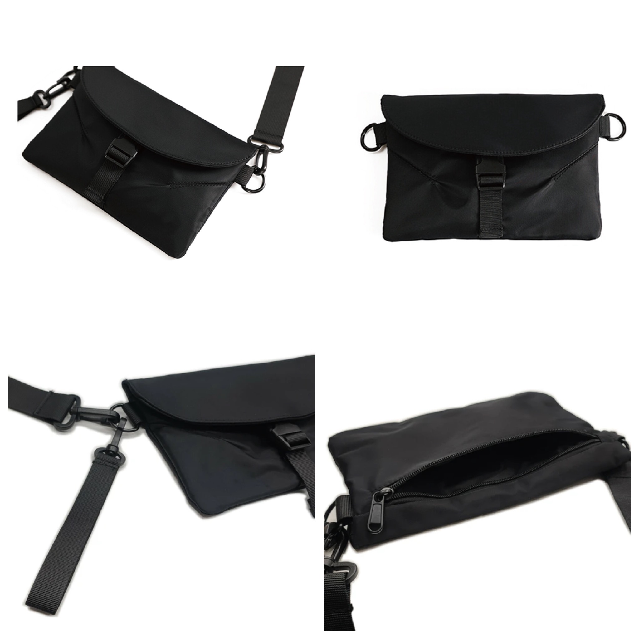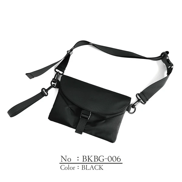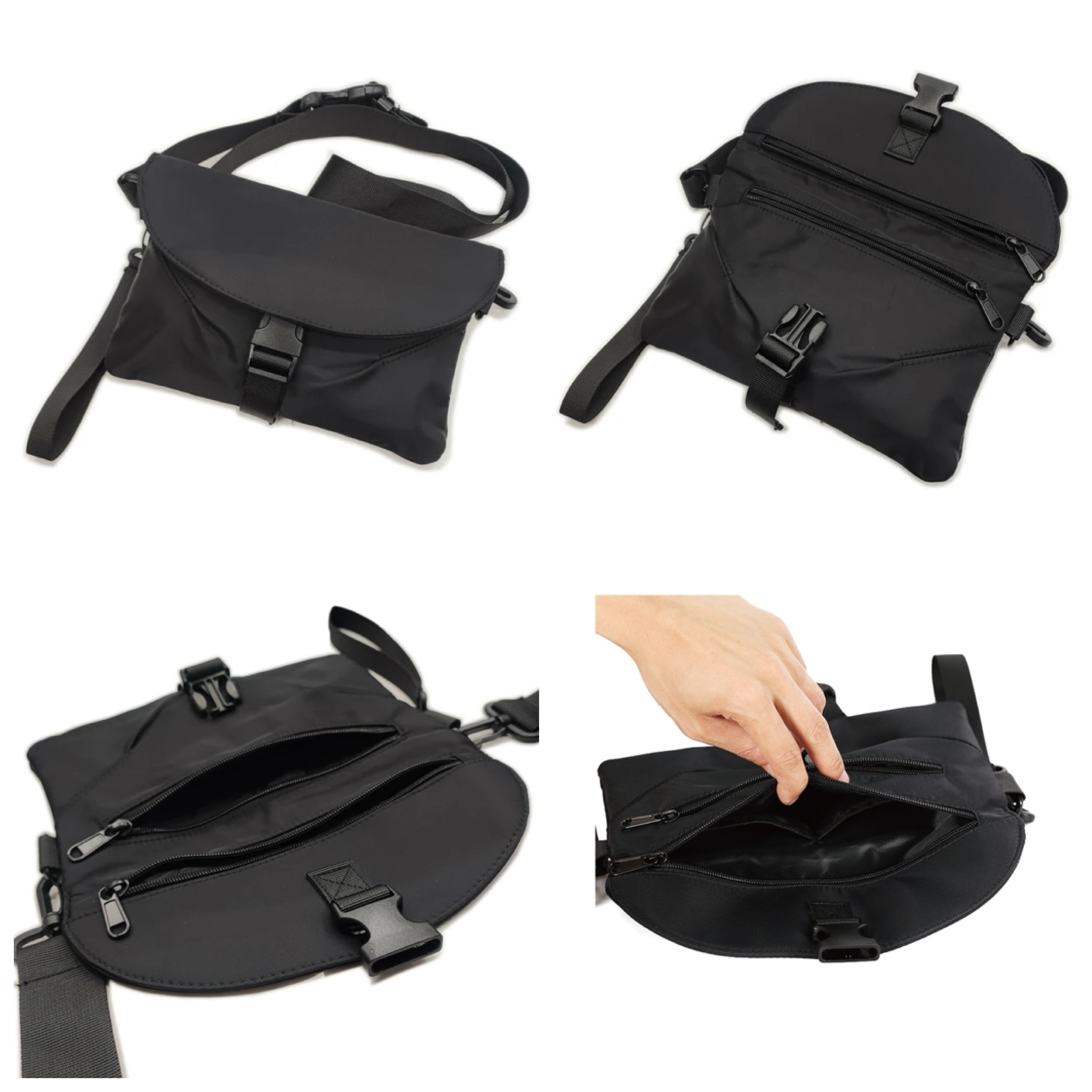 バックル開閉後、前面ファスナー開閉ポケットを配置。