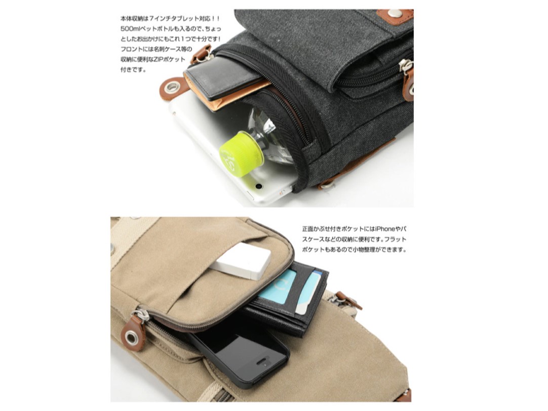 メインルームには7インチタブレットや500mlペットボトルがすっぽり入り、前面カブセ裏のポケットにはスマホやパスケースなども収納可能な大容量シザーケース!