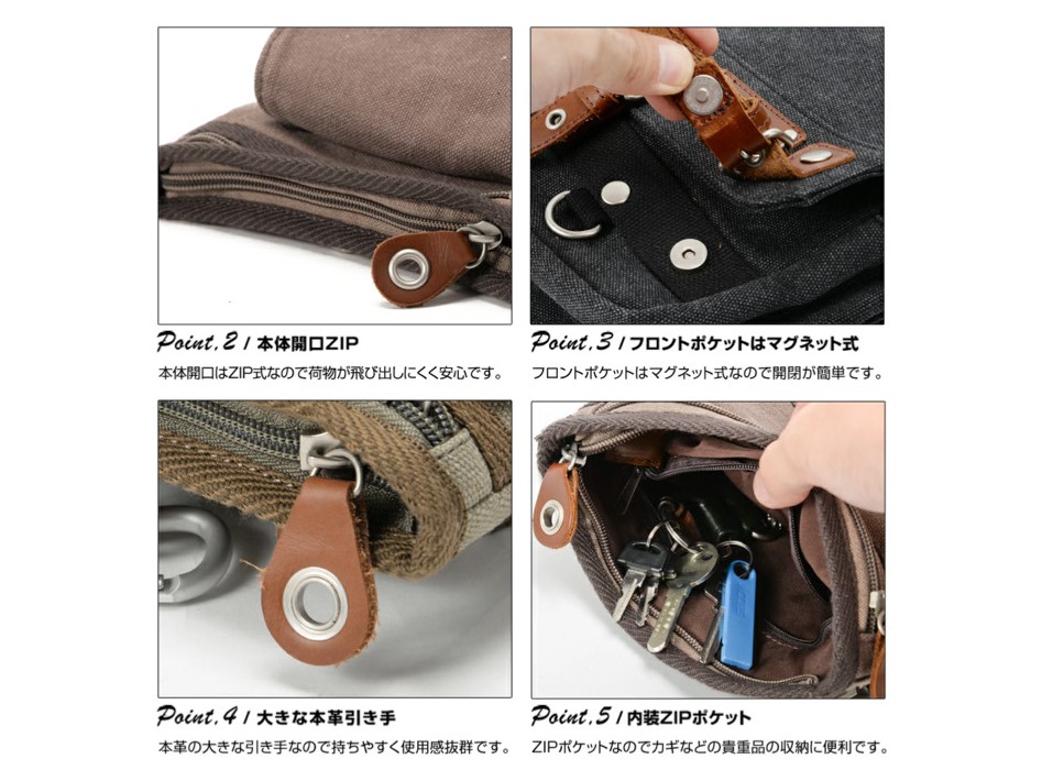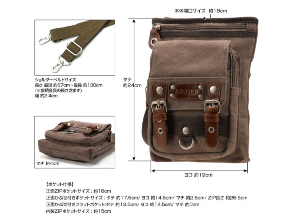 正面かぶせ付きポケット:タテ 約17.5cm/ ヨコ 約14.5cm/ マチ 約2.5cm/ ZIP長さ 約26.5cm