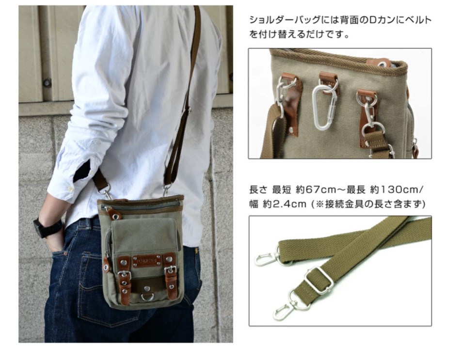 ショルダーベルト:長さ 最短 約67cm〜最長 約130cm/ 幅 約2.4cm (※接続金具の長さ含まず)