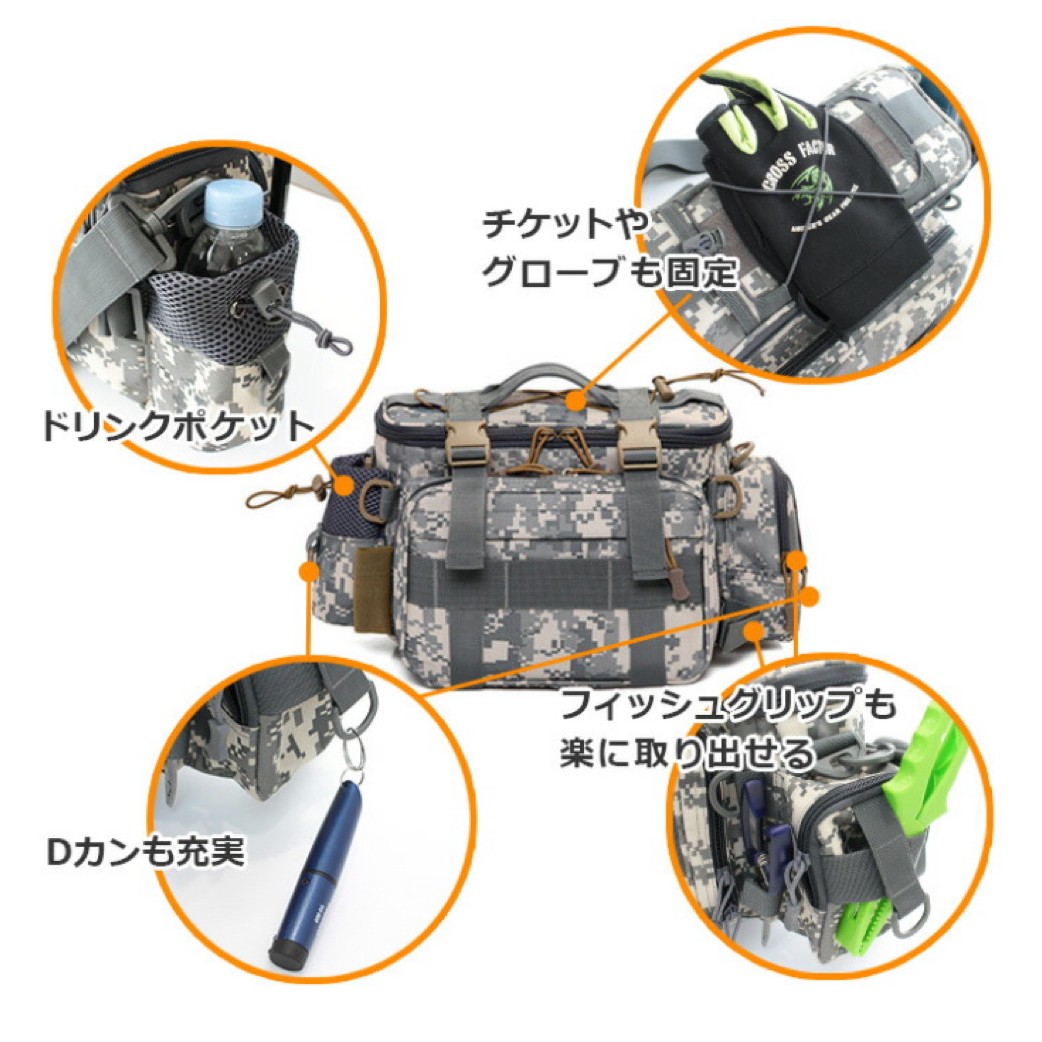 ショルダーバッグ、ウェストバッグ、手提げバッグとして使用可能。