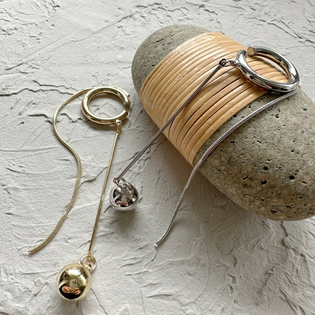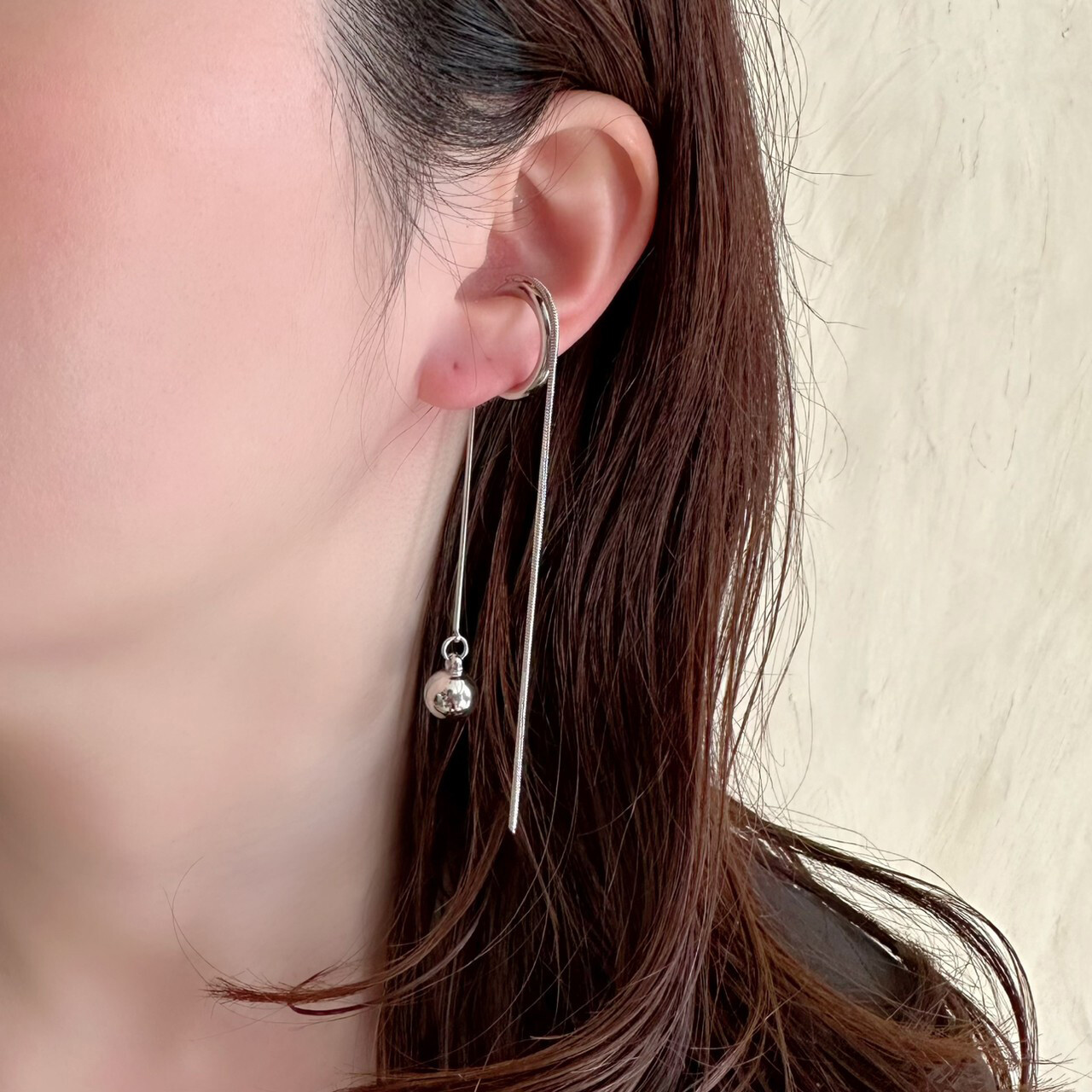 揺れるモチーフが視線を惹きつけるメタルイヤーカフ