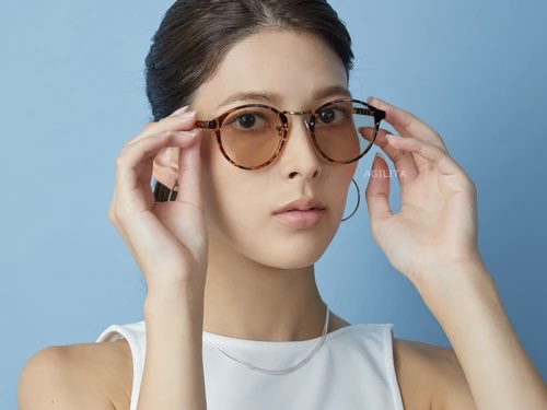 シンプルなデザインがスタイリングに合わせやすい、ボストン型サングラス。