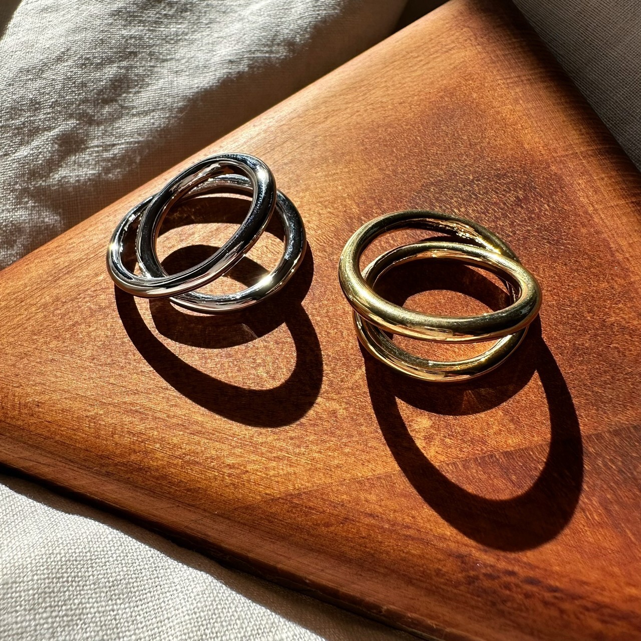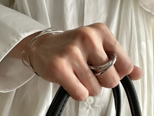 見る角度によって表情が違う螺旋状のデザインリング。
