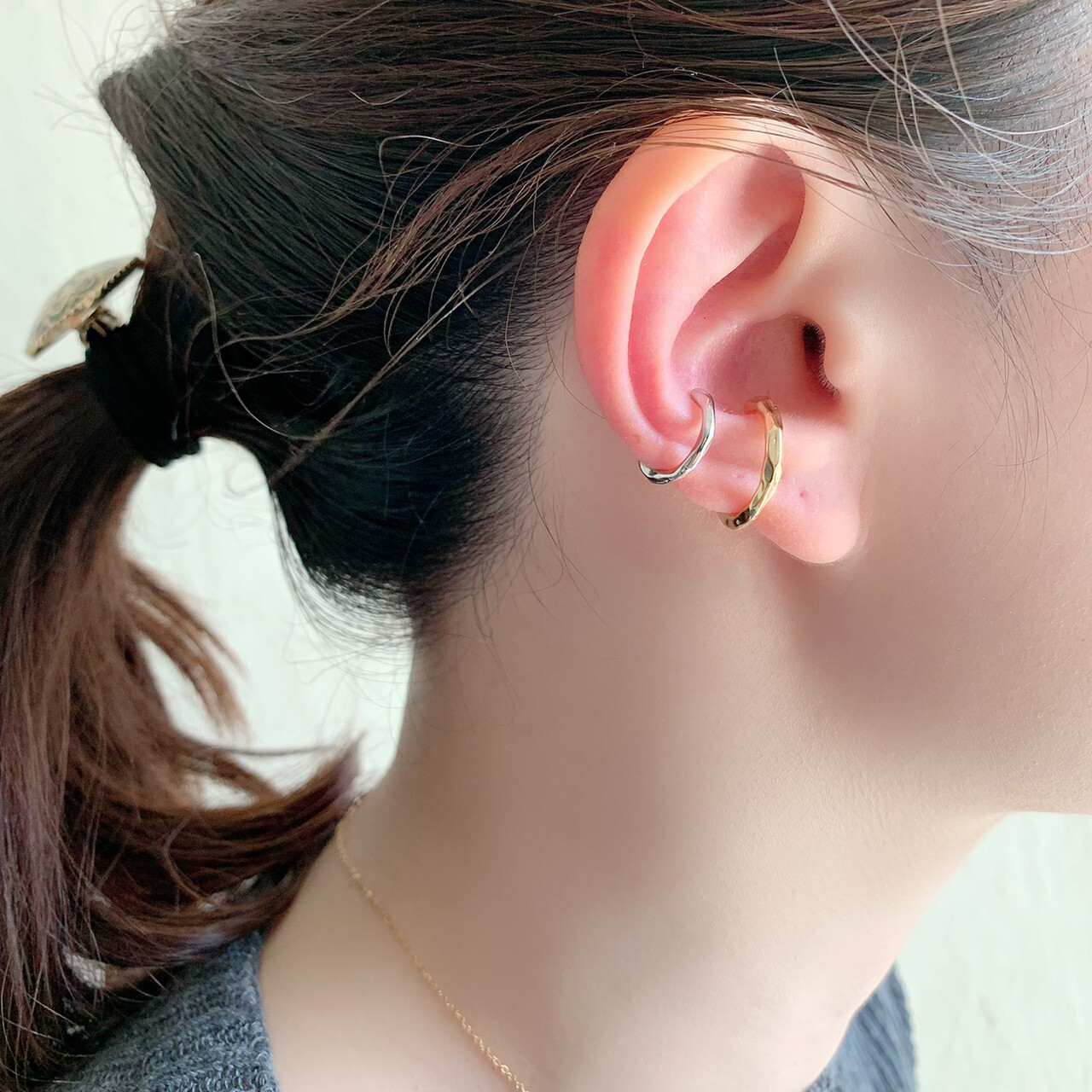 片耳に付けてアクセント使いも◎ですが、両耳に付けて、他のイヤーカフやピアスとレイヤードするのもおすすめです。