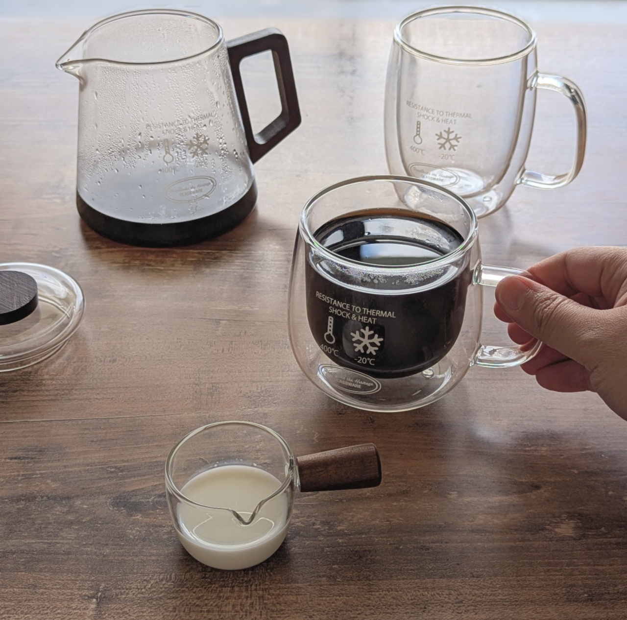 温かい飲み物にも冷たい飲み物にも使える耐熱ガラス製の食器。
