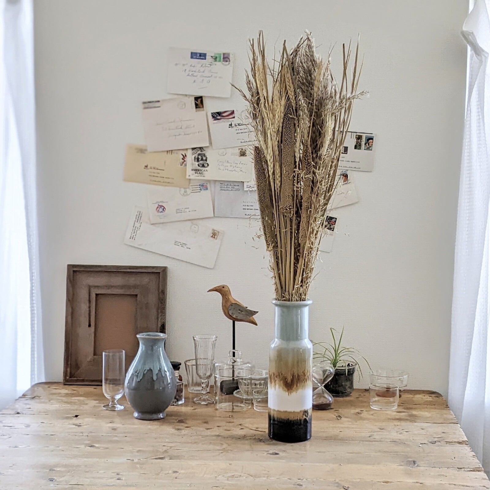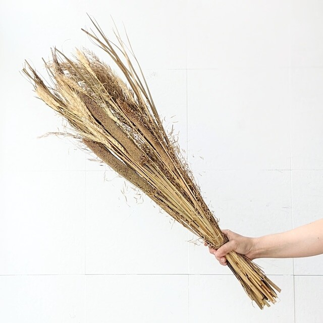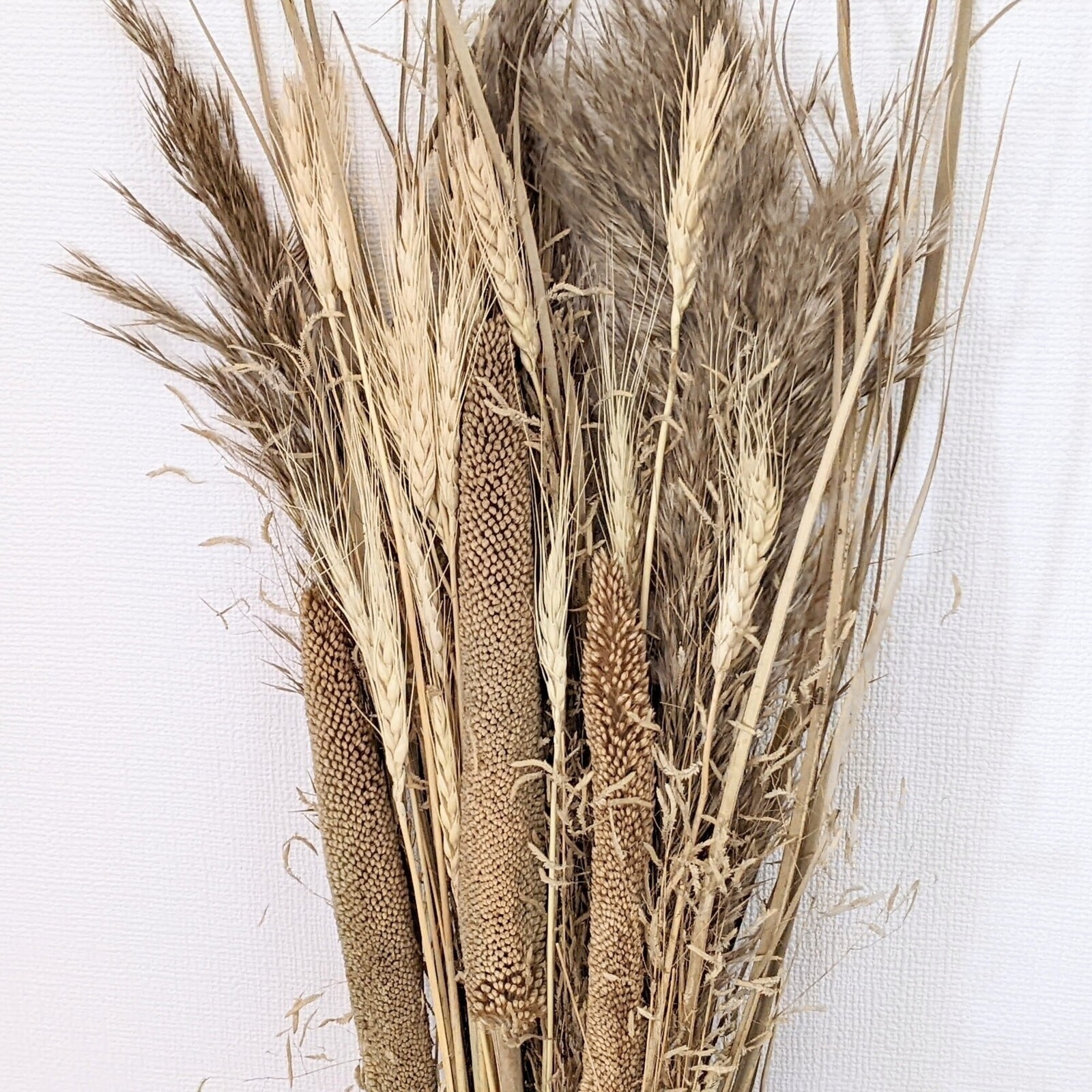 麦やガマの穂など、いくつかの素材をアレンジメントしたスティックです。