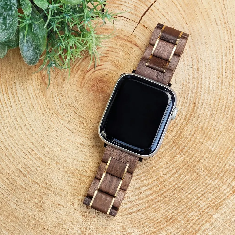 EINBAND AppleWatch 天然木バンド 20mm クルミ×ゴールド