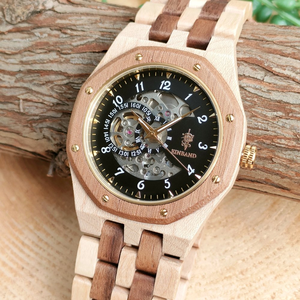 EINBAND Meteor Walnut & Maple wood ブラック文字盤 46mm 自動巻き木製腕時計