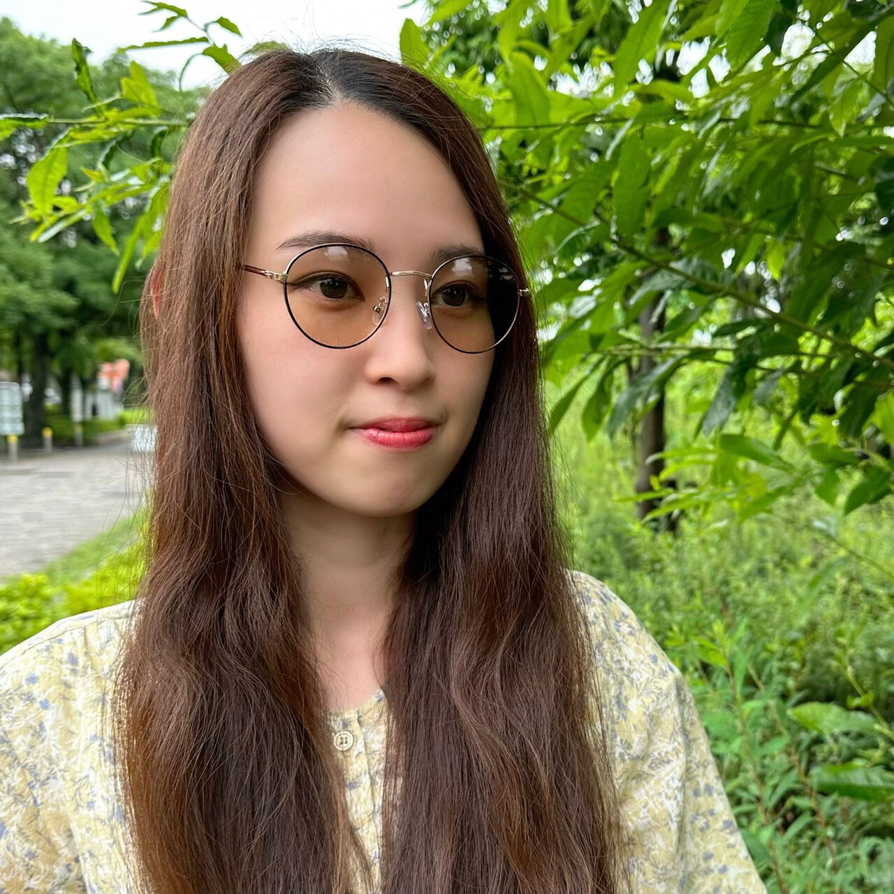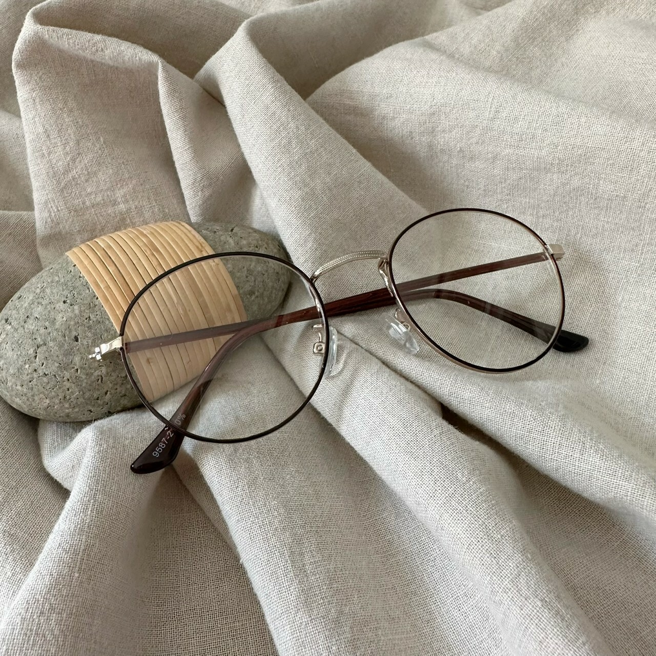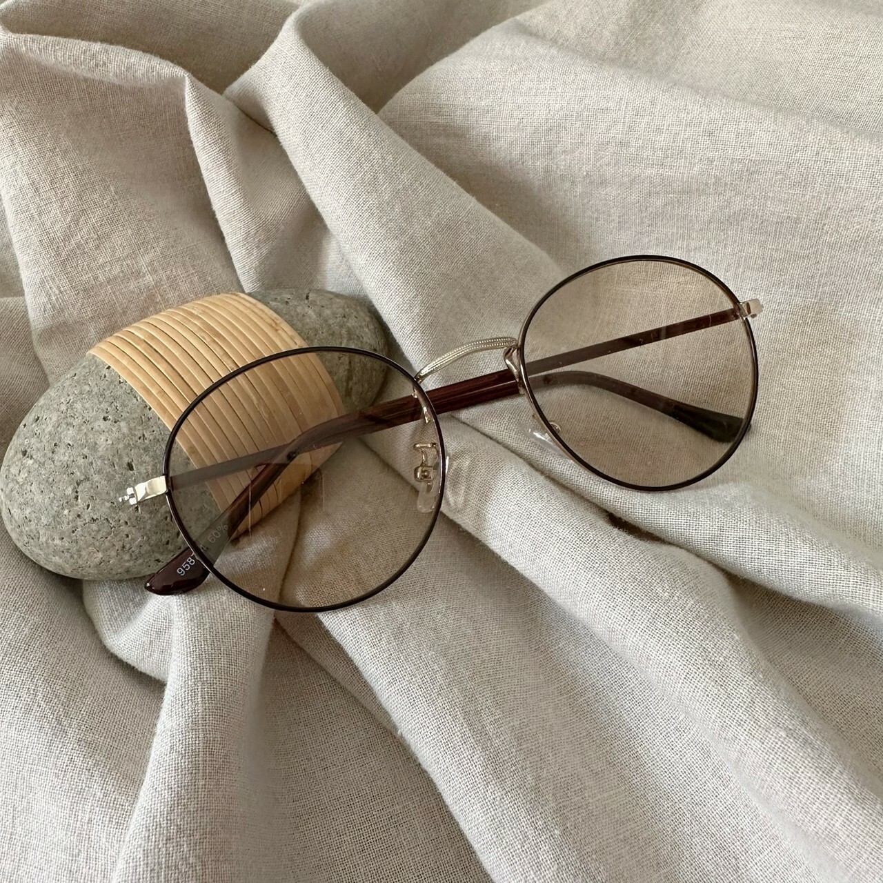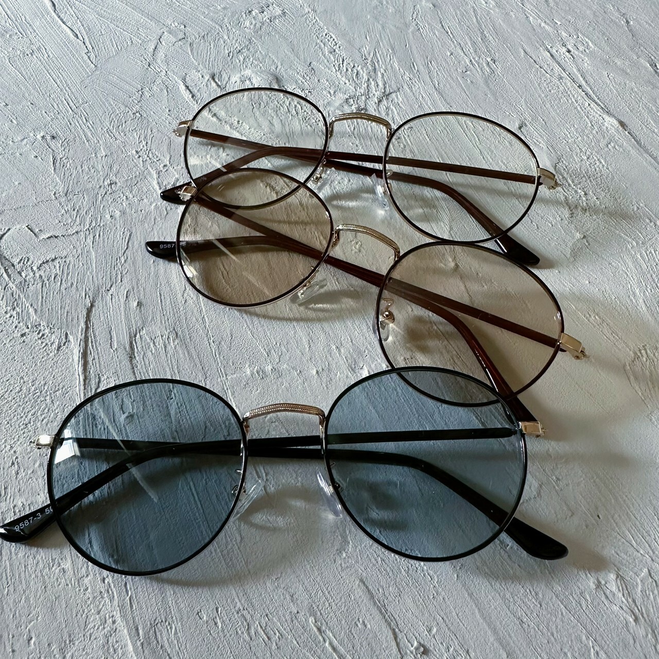スモーキーなカラーとゆるかなフレームラインが映え、スタイリングのアクセントになります。