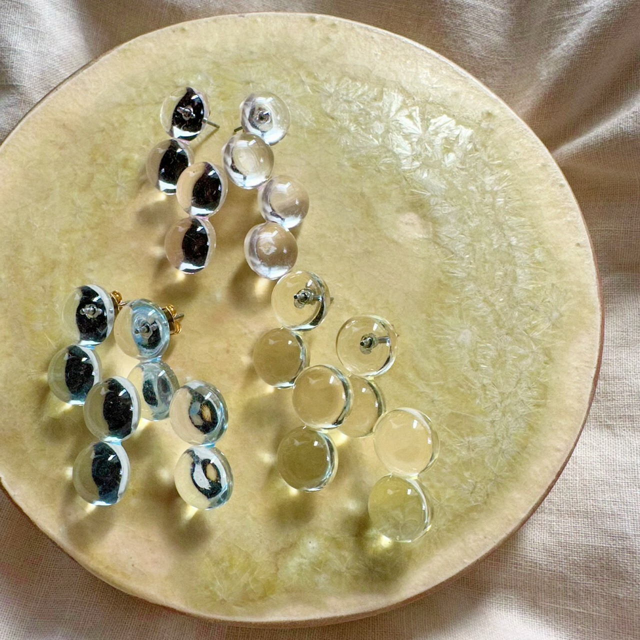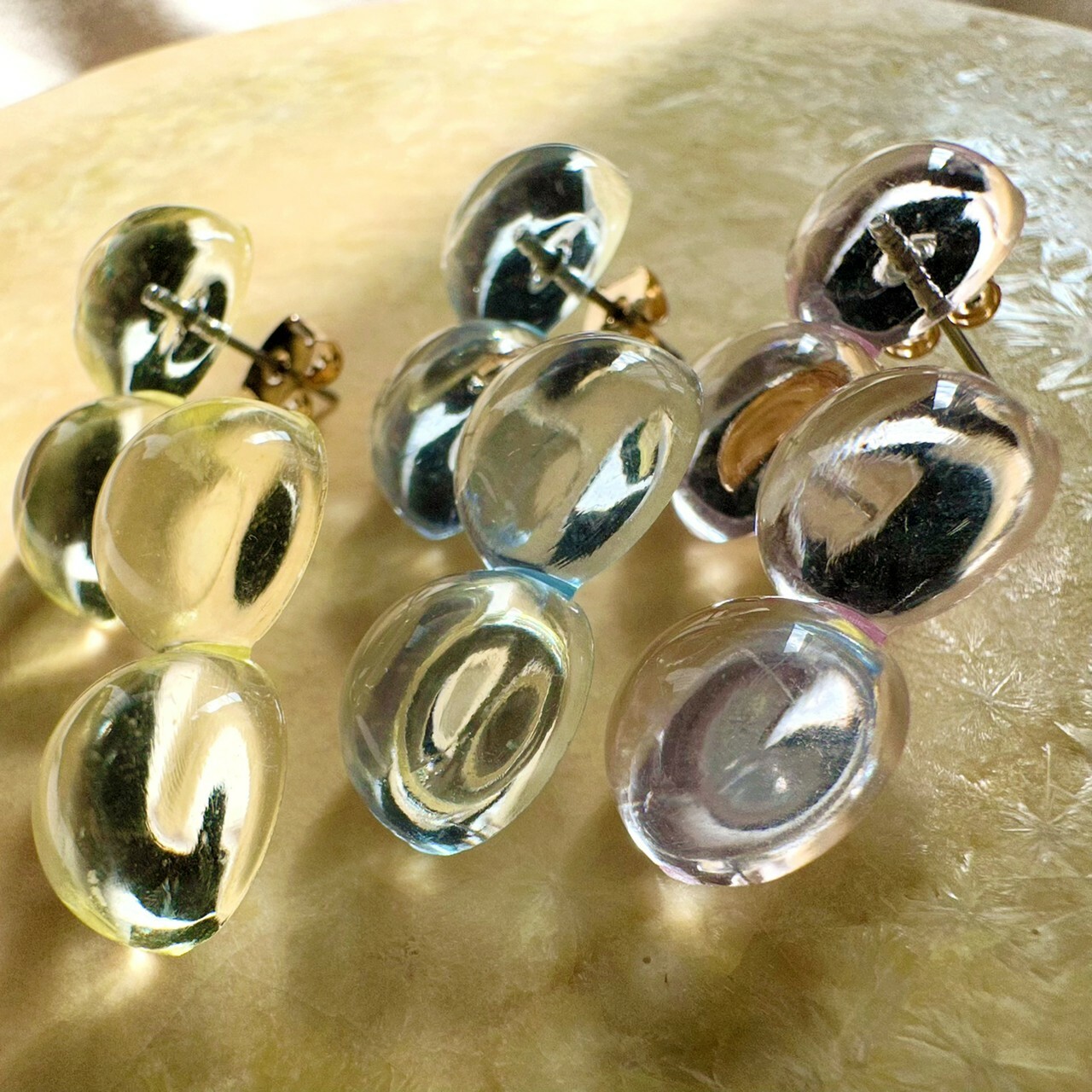 立体感のあるモチーフにクリアカラーが映える樹脂ピアス