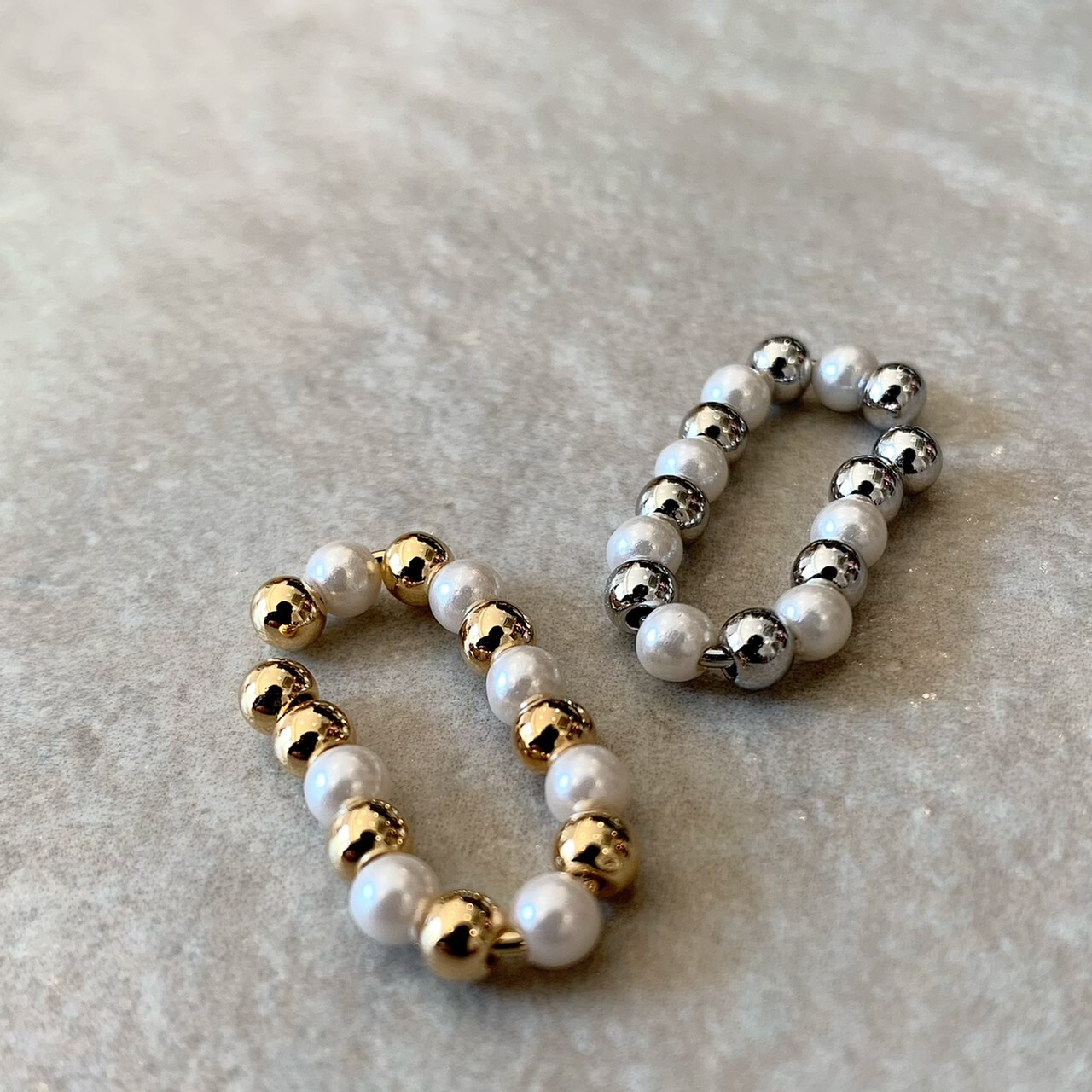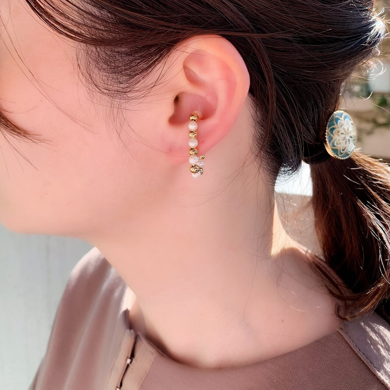 パールとメタルボールの羅列が魅力のイヤーカフです。