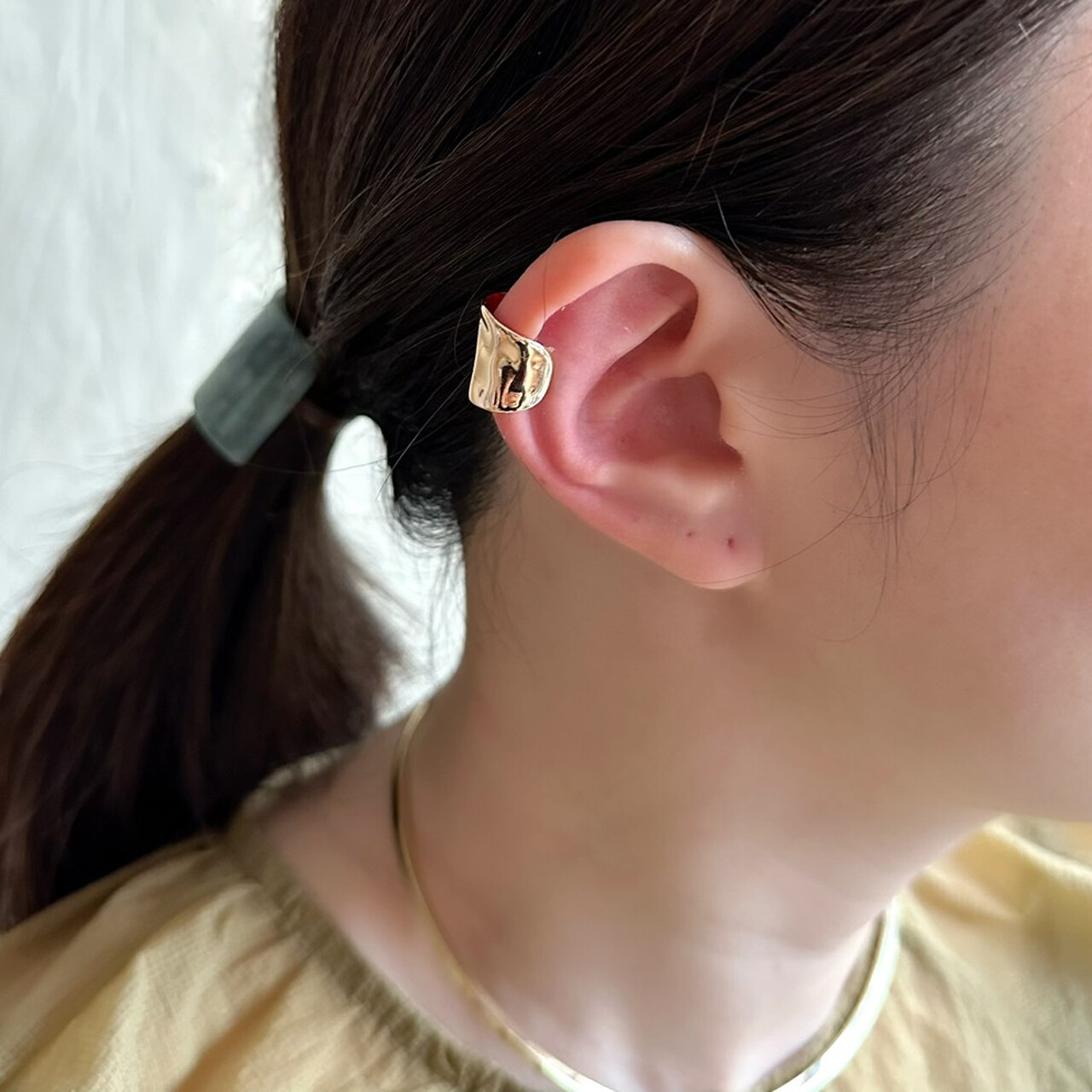 ロングプレートが耳元にエッジを効かすイヤーカフです。