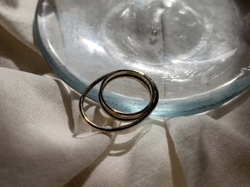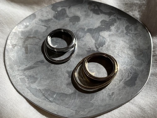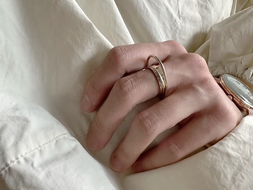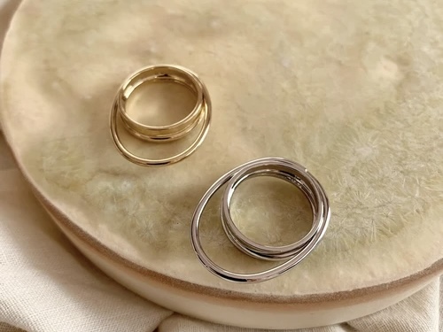 重なったラインが特徴的なデザインリング。