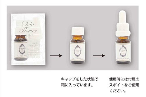 スポイトタイプの蓋(フタ)を採用することにより、香りの弱くなったソラフラワーの香りの補充がしやすく、様々な形のソラフラワーにも対応できます。