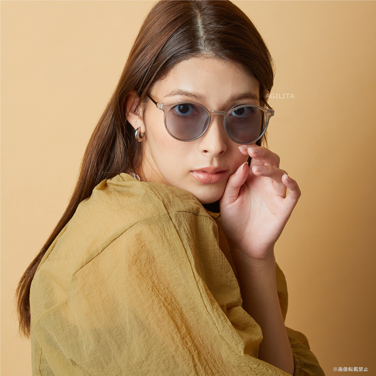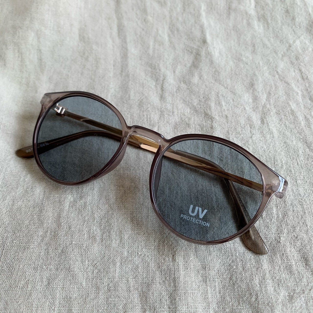 細めのフレームに淡いレンズカラーが魅力のサングラス。