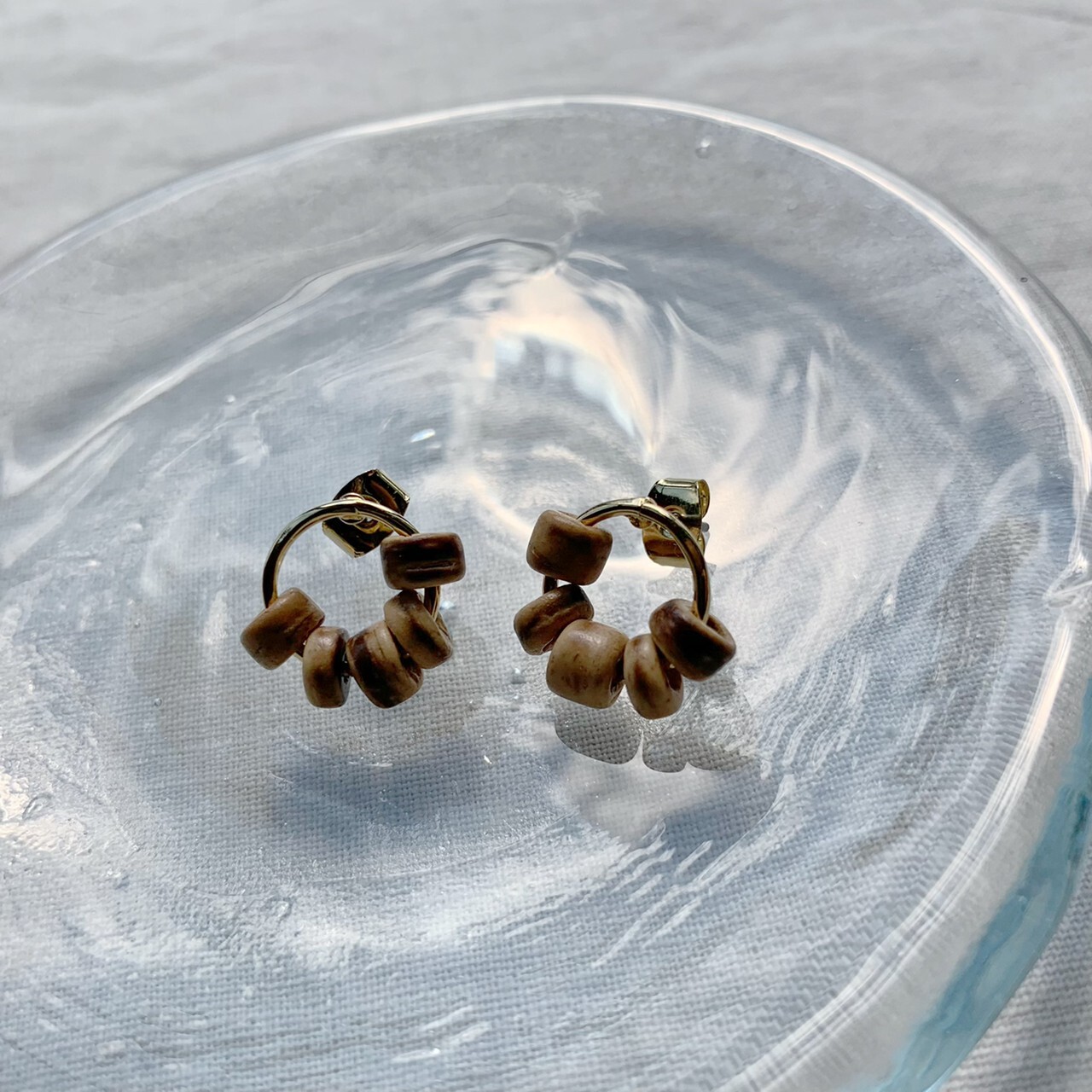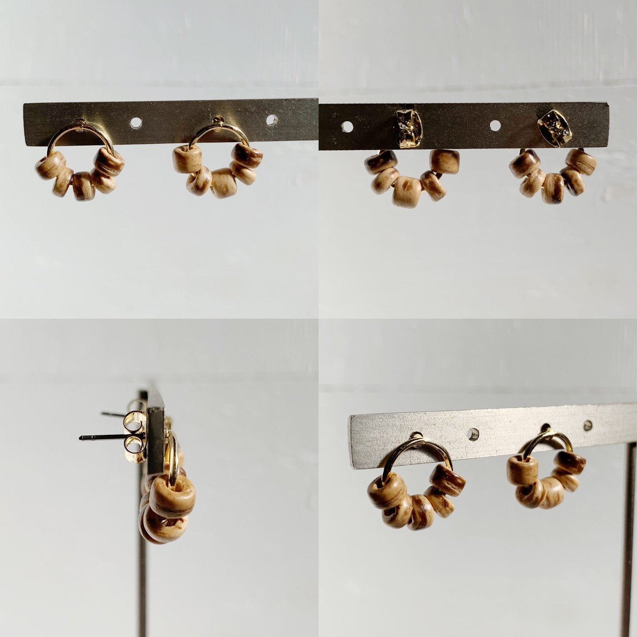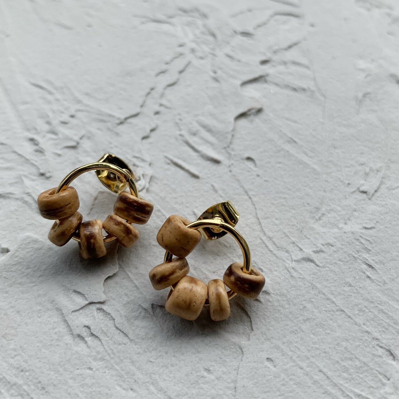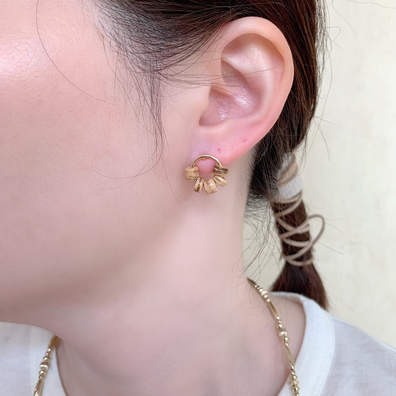 並んだウッドビーズが目を惹くサークルピアス
